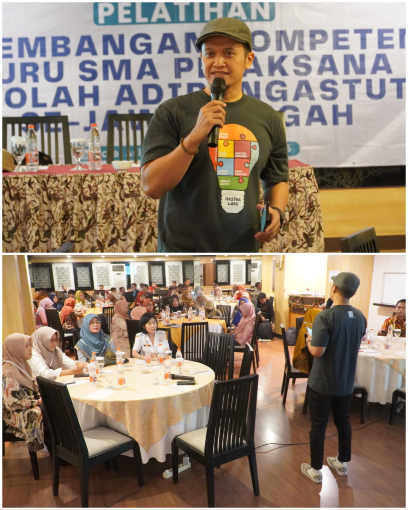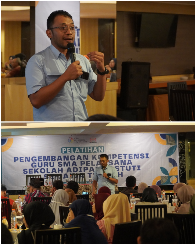 Perkembangan teknologi informasi dan komunikasi (TIK) yang pesat telah membawa perubahan signifikan dalam dunia pendidikan, termasuk pada peran dan kompetensi guru SMA. Guru tidak lagi hanya dituntut menguasai materi ajar, tetapi juga mampu merancang pembelajaran yang kreatif, inklusif, dan relevan dengan karakter peserta didik abad ke-21. Menjawab tantangan tersebut, Pelatihan Pengembangan Kompetensi Guru SMA Pelaksana Sekolah Adipangastuti Se-Jawa Tengah Tahun 2025 diselenggarakan pada 9–10 Desember 2025 di Hotel Asia Solo. Kegiatan ini dipandu oleh Direktur Program Solo Bersimfoni, Khresna Bayu Sangka, Ph.D.